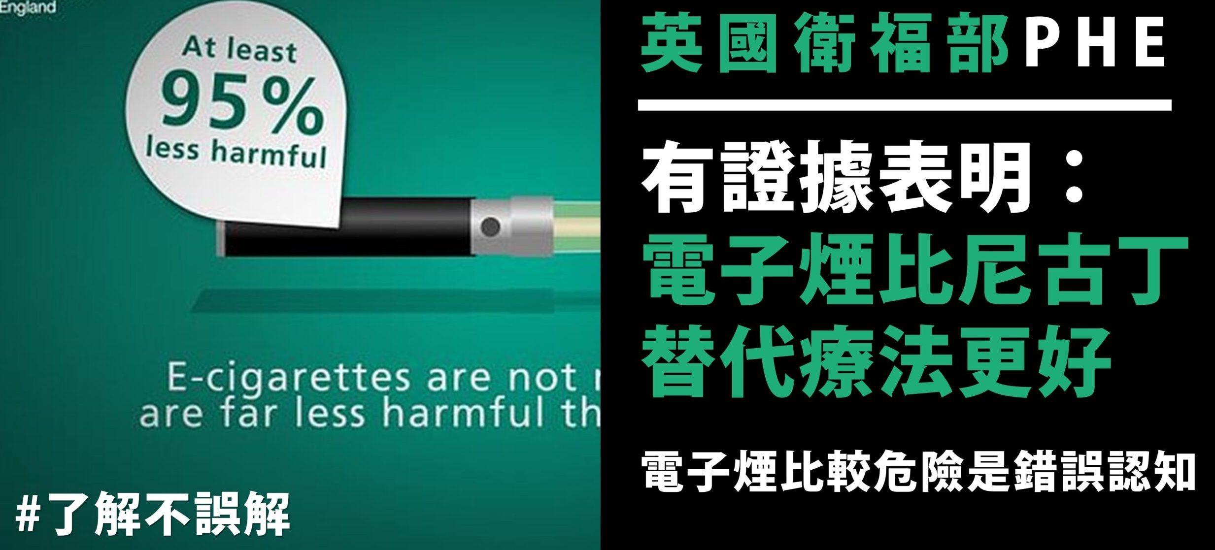 【了解不誤解】「英國衛福部PHE」發佈研究結果:有證據表明,電子煙比尼古丁替代療法更好